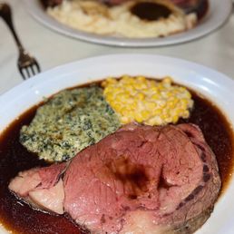 My family just ate here last night to celebrate my 11 year old's birthday. I missed the deadline to make a reservation at House of Prime Rib, their favorite restaurant, so I figured San Mateo Prime was the next best thing. It's much closer to us and parking is much easier. The menu is very similar to House of Prime Rib...you order an entrée, and it includes a salad and choice of two sides as well as a popover. The salad was not spun in front of us, but it was very good. My younger child doesn't eat salad, so I indulged in two plates of the house salad. I opted for The Avenue Cut of prime rib, which is 12 oz, creamed corn and creamed spinach. The meat was cooked well; it was tender and was delicious with the au jus. I liked that they offered a spicy and nonspicy horseradish. I was disappointed in the creamed spinach though. I'm not sure if they added too much cornstarch or what, but it was way too thick. The creamed corn tasted fine. The popover was a highlight though! I loved tearing it and dipping it into the au jus! I was very disappointed with the dessert options. They didn't even give us a menu; there were only three options - cheesecake, tiramisu and crème brulee (none of which appealed to the birthday kid). The desserts menu online offers nine different things! I even asked if they had ice cream, and they declined. I would've brought a cake in had I known. I ordered the crème brulee so we could at least sing happy birthday. It was fine and it was complimentary so I can't complain, but my child didn't enjoy it sadly. Everyone in my party ordered prime rib and seemed to enjoy it. There was something inedible in my mom's salad though. When she complained to the manager, he apologized and brought her a new salad right away. Overall, it was an enjoyable meal and service was great. It was just as I predicted...good but not as good as House of Prime Rib!!!
